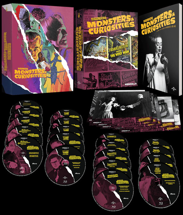 ** Universal Horror Monsters And Curiosities: From the silent shadows to the atomic age, Universal Pictures defined the cinematic language of horror. This collection brings together the studio's wildest, rarely-seen cult treasures in a wild ride through Universal's strangest, scariest, and most surprisingly curious creations featuring 45 films!